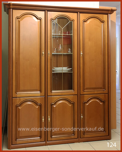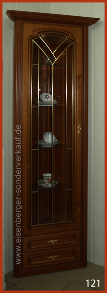 | 121 | H: 198 cm B:/T: 55 cm Eck Vitrine Romantica, kirschbaumfarbig mit Beleuchtung |