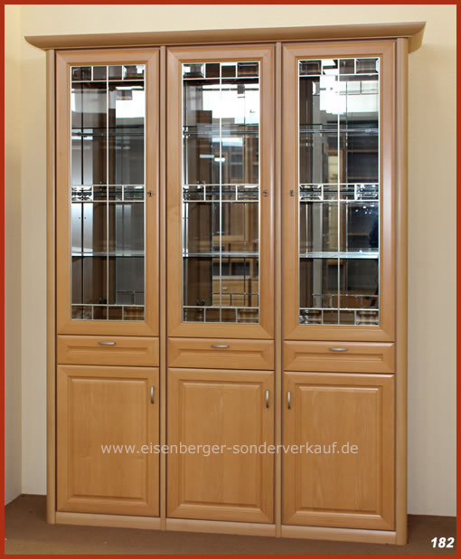 | 182 | B: 167 cm H: 220 cm T: 48 cm Vitrine Carmina, Ahorn champagner mit Glasbodenbel. |