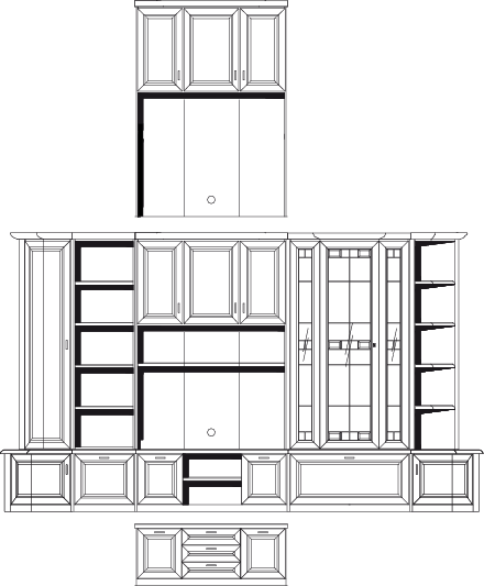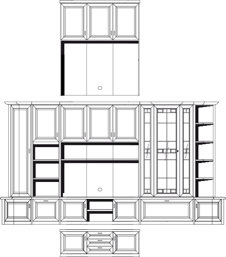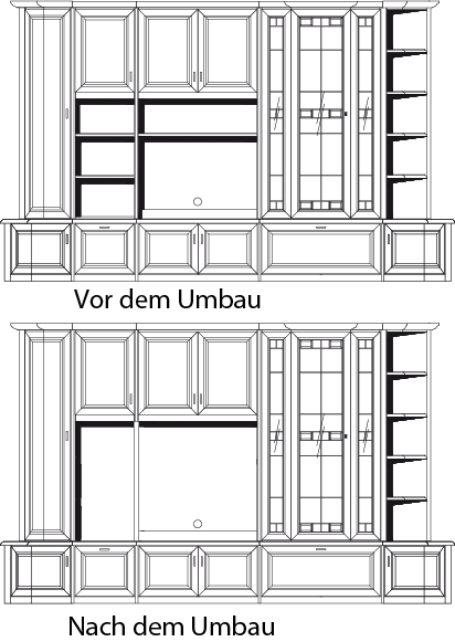| Nicht geeignet bei nebenstehenden Aufsatzteilen mit Barklappe, Schubkästen, Regalelementen. | |||